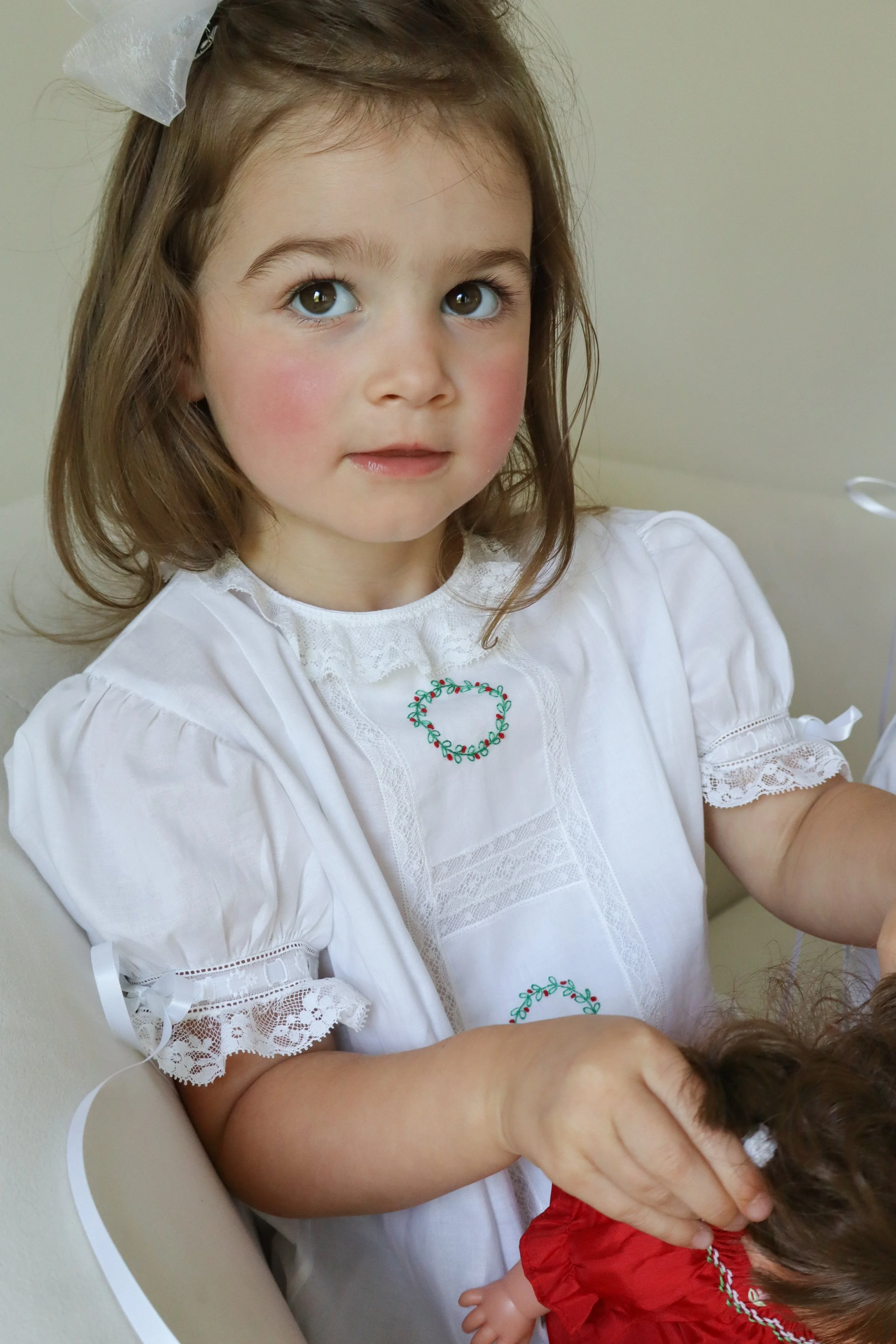 Libby Priere Heirloom is made in the USA by our wonderful seamstress, Angela. We are so blessed to have her on our team.